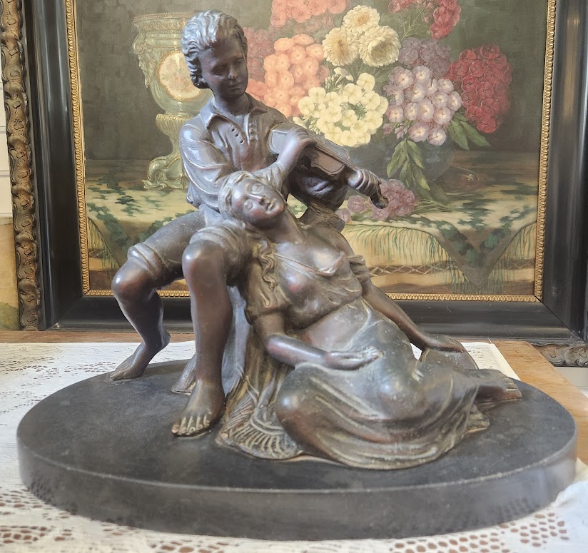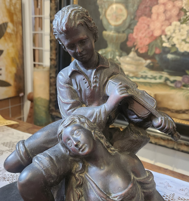 Início / Acervo / Antiguidades / Casal de musicistas Casal de musicistasR$2.300,00 Em estoque Casal de musicistas quantidade Adicionar ao carrinho SKU: Ri01pzz Categorias: Antiguidades, Bronze Tag: Escultura Obras Relacionadas Vaso de vidro Murano R$600,00 Candelabro para 3 velas R$430,00 Bomboniere R$90,00 Jogo de 3 peças em Porcelana Paraná R$230,00