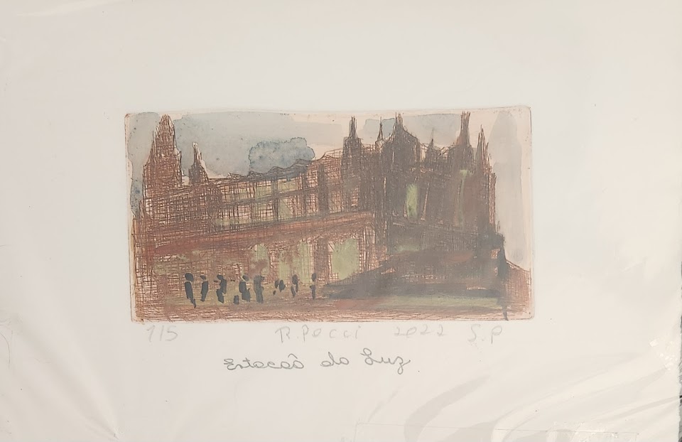 Início / Acervo / Gravuras / Estação da Luz Estação da LuzR$500,00 ArtistaRodrigo PecciDimensões 16 x 25 cm Tiragem 1/5 Ano 2022 Em estoque Estação da Luz quantidade Adicionar ao carrinho SKU: RP05dcz Categoria: Gravuras Tag: Gravura em Metal Obras Relacionadas LágrimaPedro Seman R$100,00 MarkoPedro Seman R$200,00 Cavalo MarinhoPedro Seman R$900,00 Santana de ParnaíbaAntonello L'Abbate R$500,00